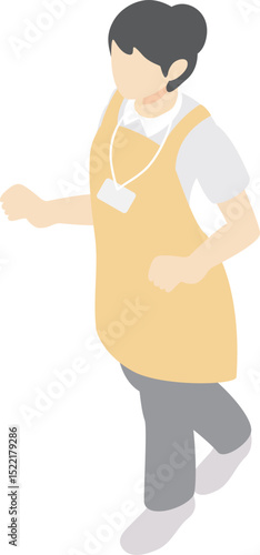 © ribbon_s, Fototapeta premium アイソメトリック 俯瞰 人物 女性 医療 介護福祉士 ヘルパー 全身 イラスト素材