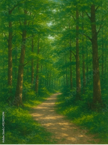 © hapic, Fototapeta premium 평온한 숲길 배경 일러스트