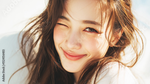© nagi, Fototapeta premium ウィンクする笑顔の美しい日本人女性