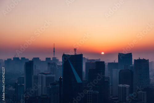 © 幸徳 蓮見, Fototapeta premium 夜明けを迎える東京都心のビル群