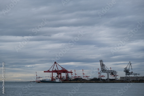 Fototapeta premium 日本、大阪港、海、観光スポット、港湾、船舶、安治川河口、天保山ハーバービレッジ、青空、風景、写真素材