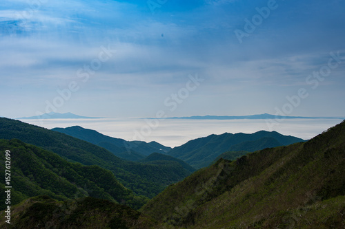 © 敏之 青山, Obraz premium 国後島と根室海峡の雲海、知床半島の知床峠から撮影