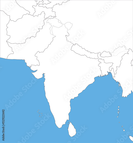 © elico-polo, Obraz premium インド・パキスタン・ネパール周辺のアジア地図、白地図