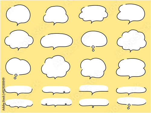 Fototapeta premium 手書き風のシンプルな吹き出しのベクターイラストセット。ふきだし、フレーム、おしゃれ、落書き