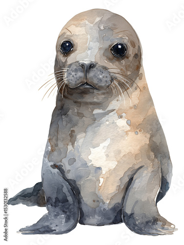 Fototapeta premium 펜 드로잉 그림과 수채화 채색 물범 가족