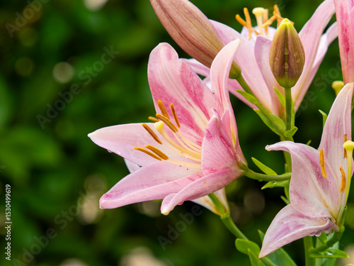 Obraz premium 雨に濡れたピンクのスカシユリ