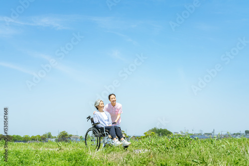 © wheeljack, Obraz premium 車椅子のシニアと介護士