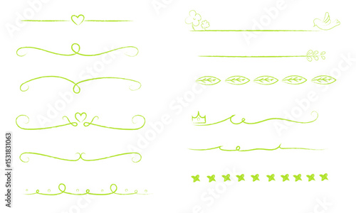 Fototapeta premium 手描き風のアンダーライン ハートと鳩 緑