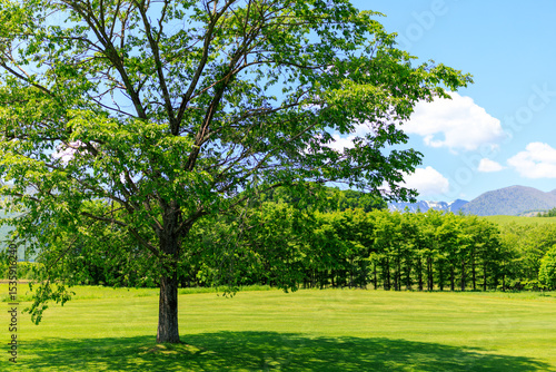 © makieni, Fototapeta premium 新緑の木々と広い草原