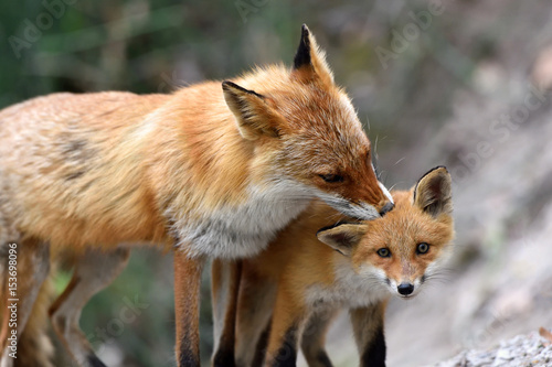 © mihiro_wildlife, Fototapeta premium キタキツネの親子