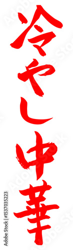 Obraz premium 手書き筆文字素材 冷やし中華 アイコン ベクター素材 レッド