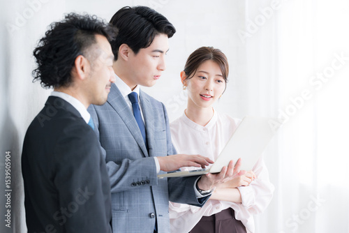 Fototapeta premium チームで仕事をするビジネスマンたち 男女の複数3人のチーム コミュニケーションなどのイメージ