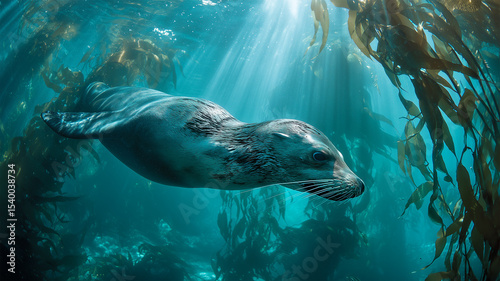 © bephoto, Obraz premium 海中を泳ぐアシカ