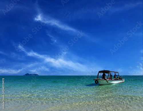 © MANPUKU, Fototapeta premium 石垣島の美しい浜辺と観光船
