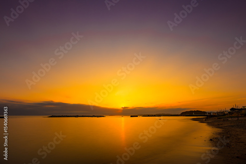 Naklejka premium 黄金色に染まる諏訪町下海岸の美しい夕景 神奈川県 湘南 葉山町