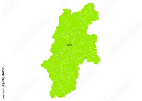 Obraz premium 長野県の行政区分付き地図