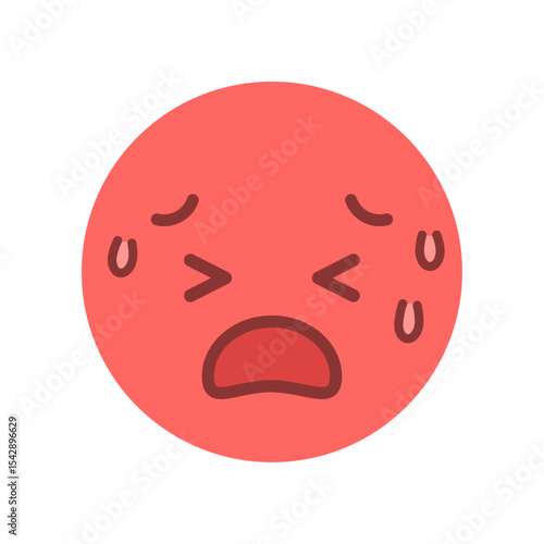 Fototapeta premium 苦しい表情で汗をかいている赤い顔の絵文字 - 暑い・痛い・高熱や熱中症でつらい等の感情のアイコン素材