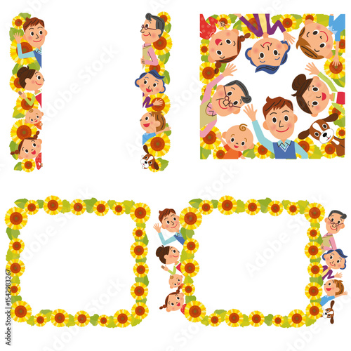 Obraz premium 三世代家族と向日葵のフレーム