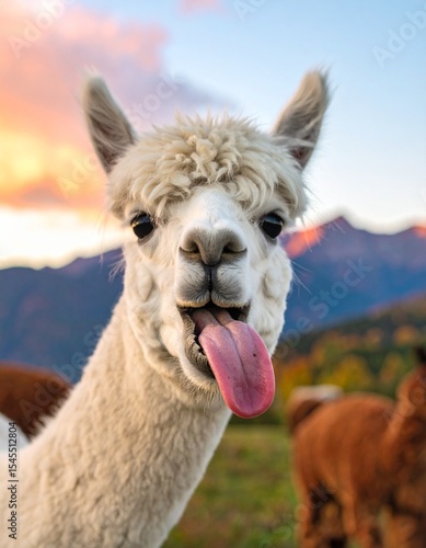 © SunnySide, Obraz premium 舌を出しているアルパカ