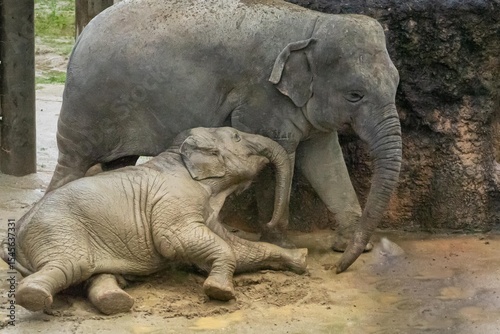 © mk1gan, Fototapeta premium どろんこになって戯れる親子像