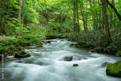 © kino, Obraz premium 新緑の奥入瀬渓流