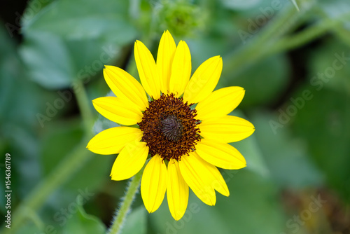 Fototapeta premium 鮮やかな黄色のヒマワリが咲く夏の庭