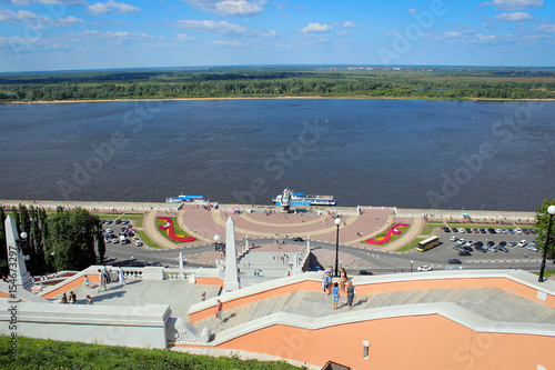 © free2trip, Fototapeta premium Вид на реку Волгу с Чкаловской лестницы, Нижний Новгород, Россия