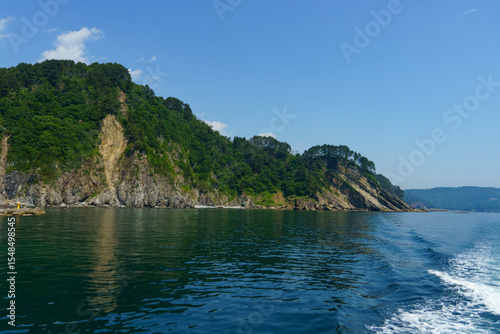 Obraz premium 遊覧船から見る荒々しい三陸海岸海