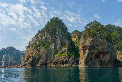 © Gottchin Nao, Obraz premium 遊覧船から見る荒々しい三陸海岸海