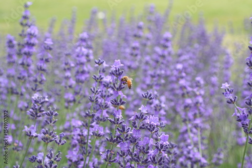 Obraz premium ラベンダー畑で蜜を集めるミツバチ