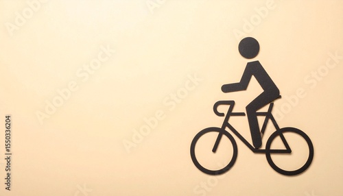Obraz premium クリーム色マット背景の隅に細線のサイクリングピクトグラムが配置され、広い空白がプロフェッショナルで落ち着いた印象を与えるシンプルなデザイン