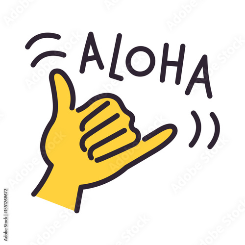 Obraz premium アロハポーズのハンドサインのかわいいポップなイラスト