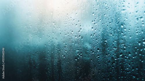 © izzyU, Obraz premium 雨上がりの窓ガラスに残る水滴と淡い光のグラデーション(自然・季節・癒し・背景)