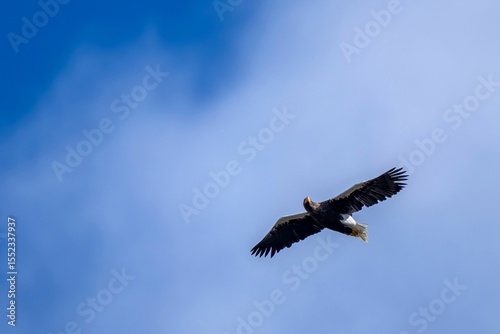© Scott Mirror, Obraz premium 青空バックに颯爽と頭上を飛ぶオオワシ