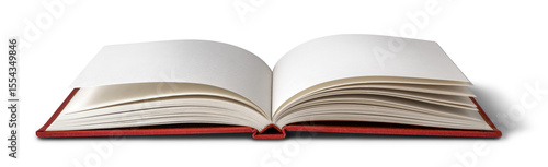 © hanahal, Obraz premium 開かれた、赤い表紙の本。横からのアングル