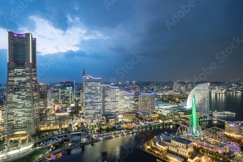 Obraz premium 日本の神奈川県横浜市みなとみらいの夜景