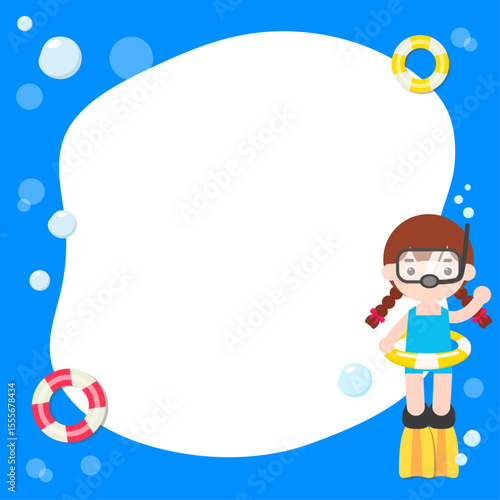 Obraz premium 물놀이를 즐기는 소녀의 바닷 속 일러스트. 메모지 배경 일러스트 디자인. 벡터 일러스트레이션.