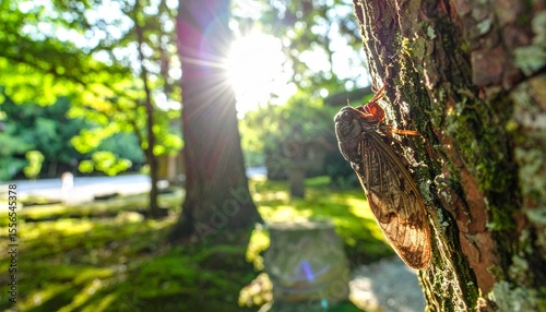 Obraz premium 夏詣での蝉と木洩れ日の静寂