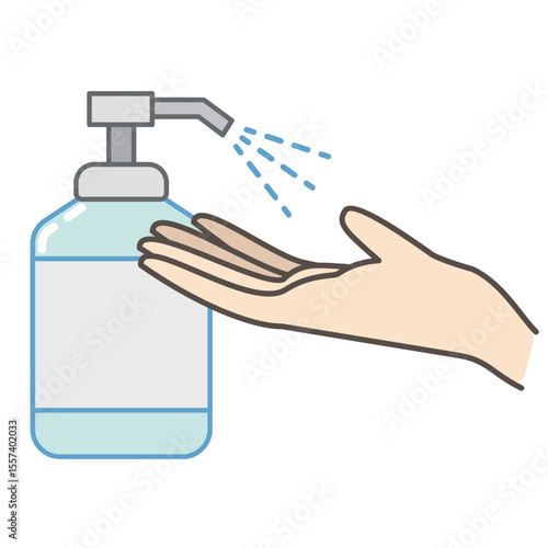 Fototapeta premium 手をアルコールで消毒するイラスト