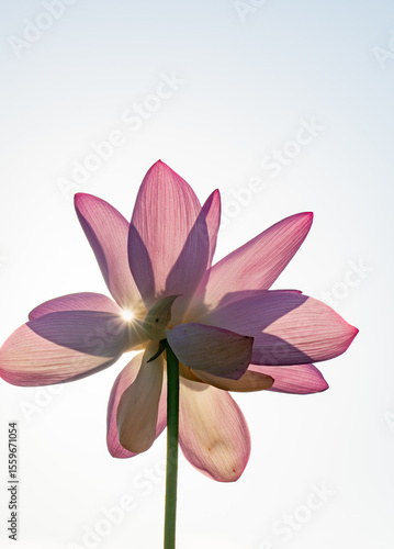 Fototapeta premium 하얀 하늘을 배경과 연꽃에 비친 강렬한 태양