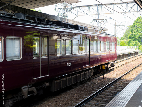 © しょこまろん, Fototapeta premium 駅に停車した能勢電鉄の電車