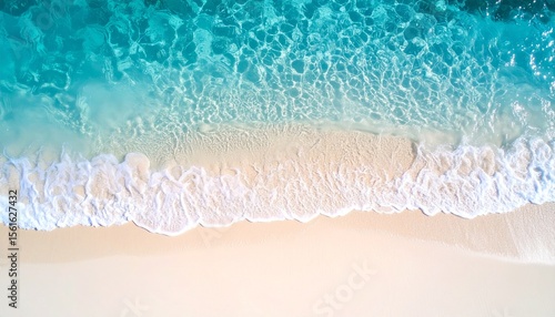 Naklejka premium 上から見た南国の青い海 白い砂浜に打ち寄せる波