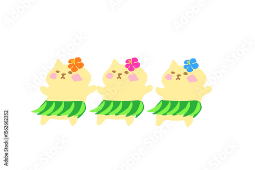 © mori, Fototapeta premium かわいい猫のフラダンス 夏の手描きイラスト
