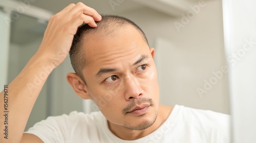 © AI-HAL8, Obraz premium 頭皮や髪の状態を確認する男性|薄毛,ヘアケア,悩み