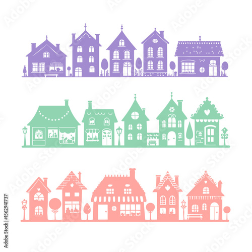 Fototapeta premium キュートな街並みのシルエットイラストセット