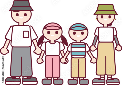 Fototapeta premium 夏服でお出かけする嬉しそうな家族のイラスト