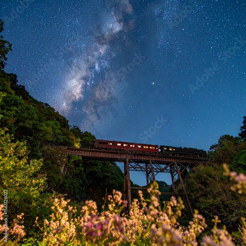 © Ajikabe, Fototapeta premium 星空を駆けるヴィンテージ列車
