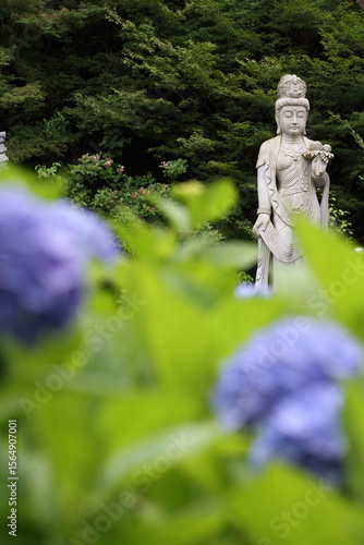 Obraz premium 紫陽花に囲まれた如来