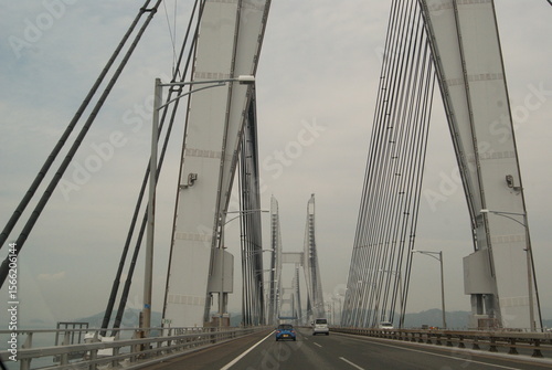 Fototapeta premium 鳴門海峡大橋のケーブルと海風