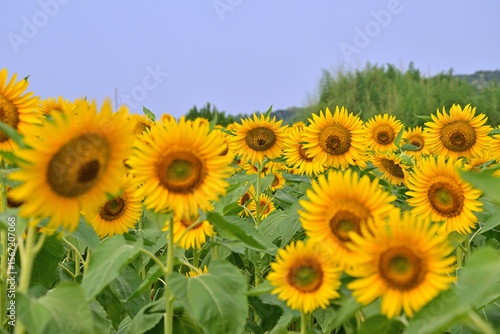 Obraz premium 一面に咲いたひまわり畑
